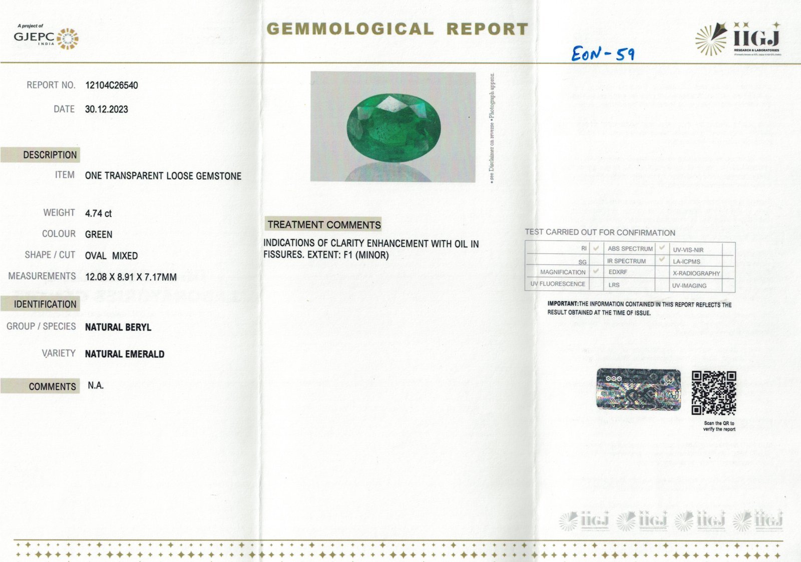 100% Natural & Certified from GJEPC JAIPUR BRANCH |